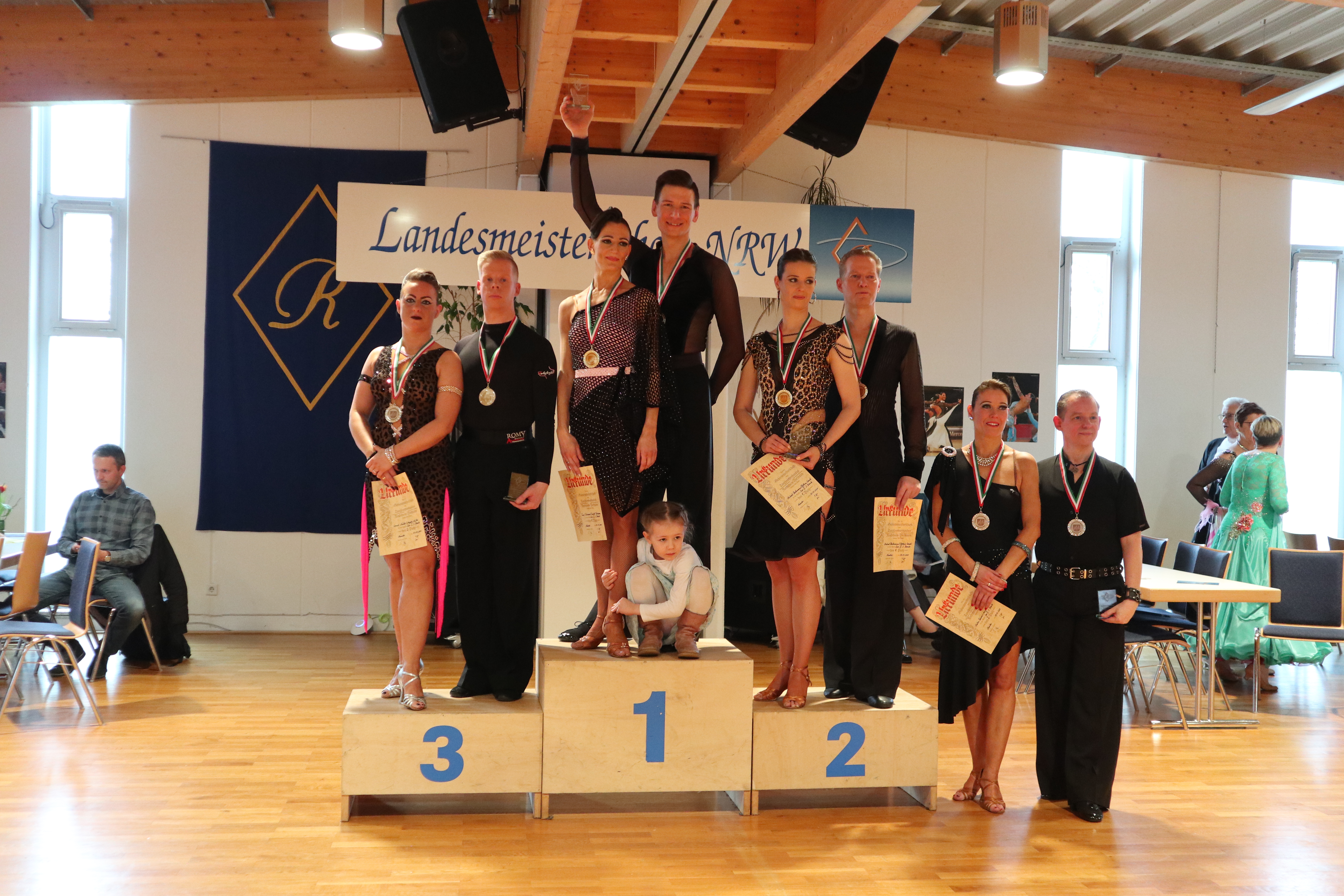 Recht eindeutig gewannen hier Christian Grünke und Maria Heckel vom TSC Aurora Dortmund mit 10 gewonnenen Tänzen. Überraschend und sichtlich erfreut auf Platz Zwei landeten Nick Mogilewskis mit neuer Partnerin Xenia Kasheev vom gleichen Club, die erst seit ca 1 Monat zusammen tanzen. Dahinter reihten sich Paare aus Düsseldorf und Köln sowie auf Platz Fünf Erik Tuigunov mit Jana Fokht und auf Platz Sechs Maxime Boutinot mit Lara-Marie Klug.