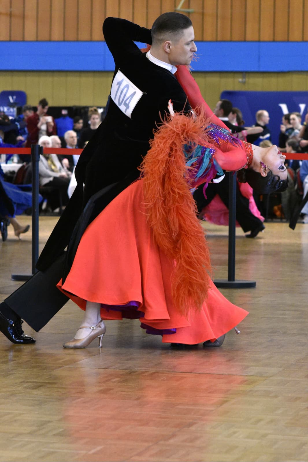 Bei der Deutschen Meisterschaft der Hauptgruppe S Latein überzeugten David Jenner und Elisabeth Tuigunov mit einer herausragenden Leistung und sicherten sich den 3. Platz von 61 Paaren. Mit dieser Bronzemedaille zählen sie erneut zu den besten Lateinpaaren Deutschlands und unterstreichen eindrucksvoll ihre starke Form.