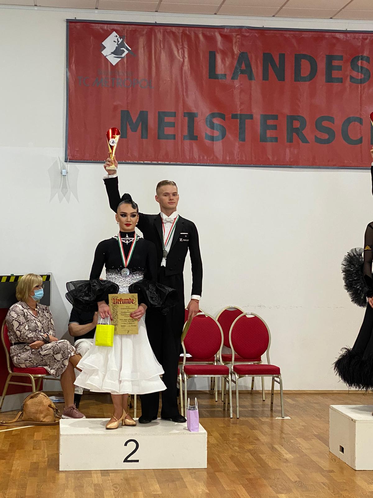David Jenner und Elisabeth Tuigunov starteten in der Jugend A Standard-klasse und wurden mit einem gewonnen Tango souverän Vizelandesmeister hinter den Rivalen Ionel/Schumichin aus Köln.