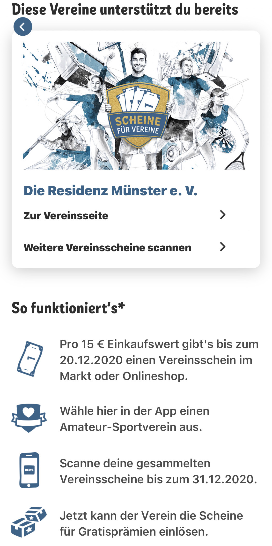 In Münster läuft aktuell wieder die Aktion "Scheine für Vereine". Die Teilnahme ist schnell und kann die Residenz unterstützen. Einfach wie in der Werbung beschrieben anwenden.