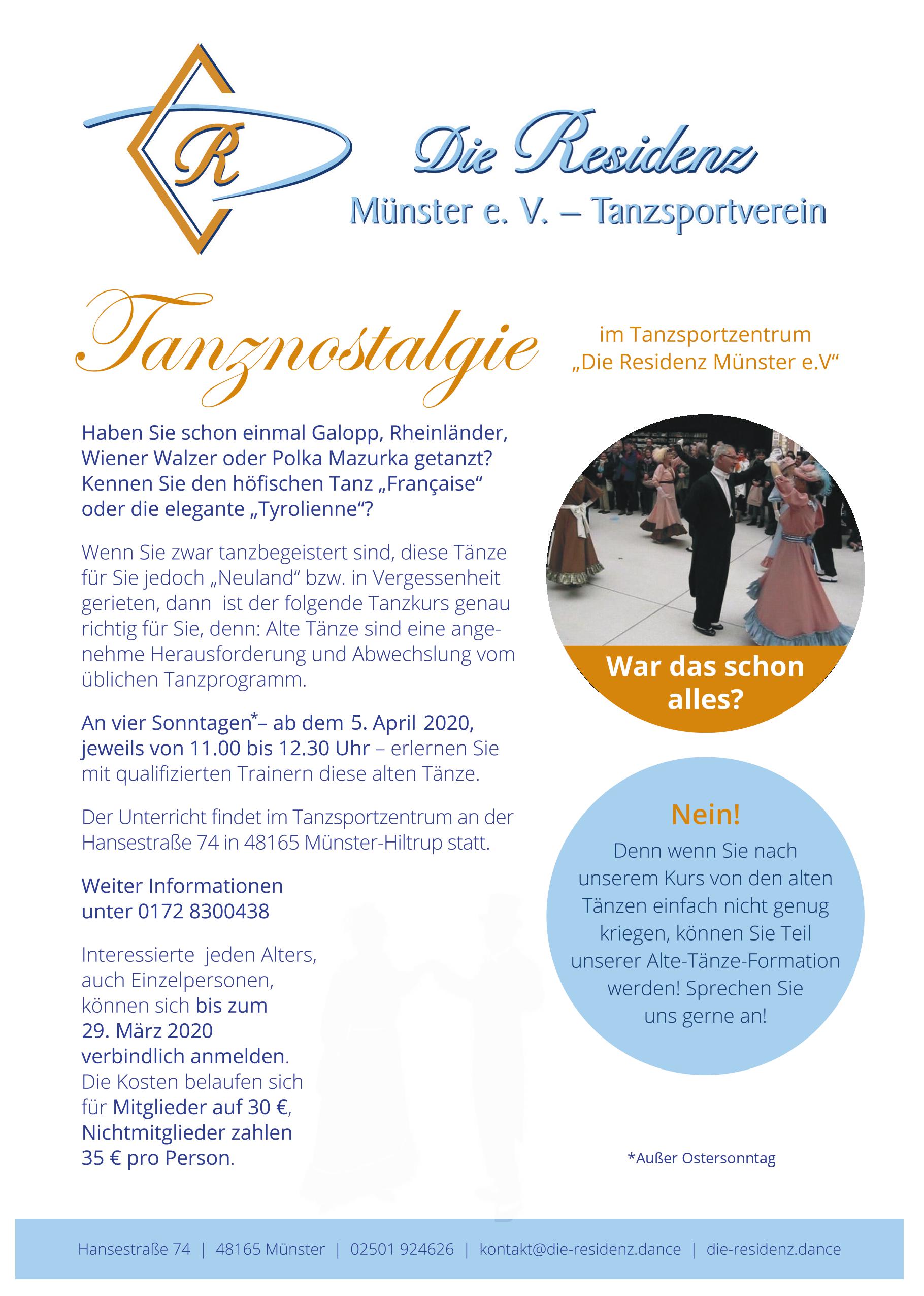 Wenn Sie zwar tanzbegeistert sind, diese Tänze für Sie jedoch "Neuland" sind bzw. in Vergessenheit gerieten, dann ist der folgende Tanzkurs genau richtig für Sie, denn: Alte Tänze sind eine angenehme Herausforderung und Abwechslung vom üblichen Tanzprogramm.