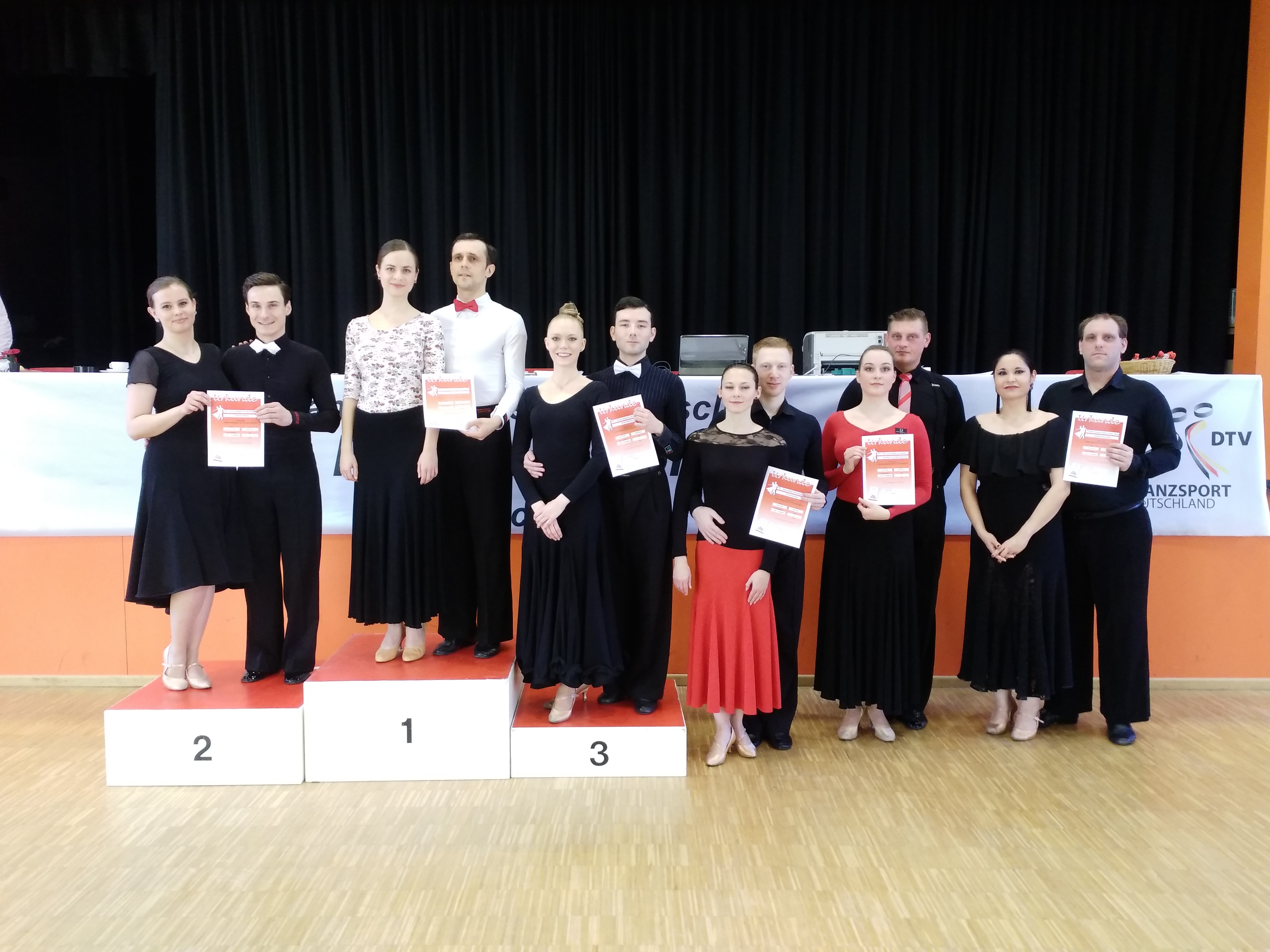 Aufgrund einiger Abmeldungen gab es ein Turnier mit 6 Paaren. Florian und Sophie tanzten sich aufs Treppchen und belegten einen starken 2. Platz.