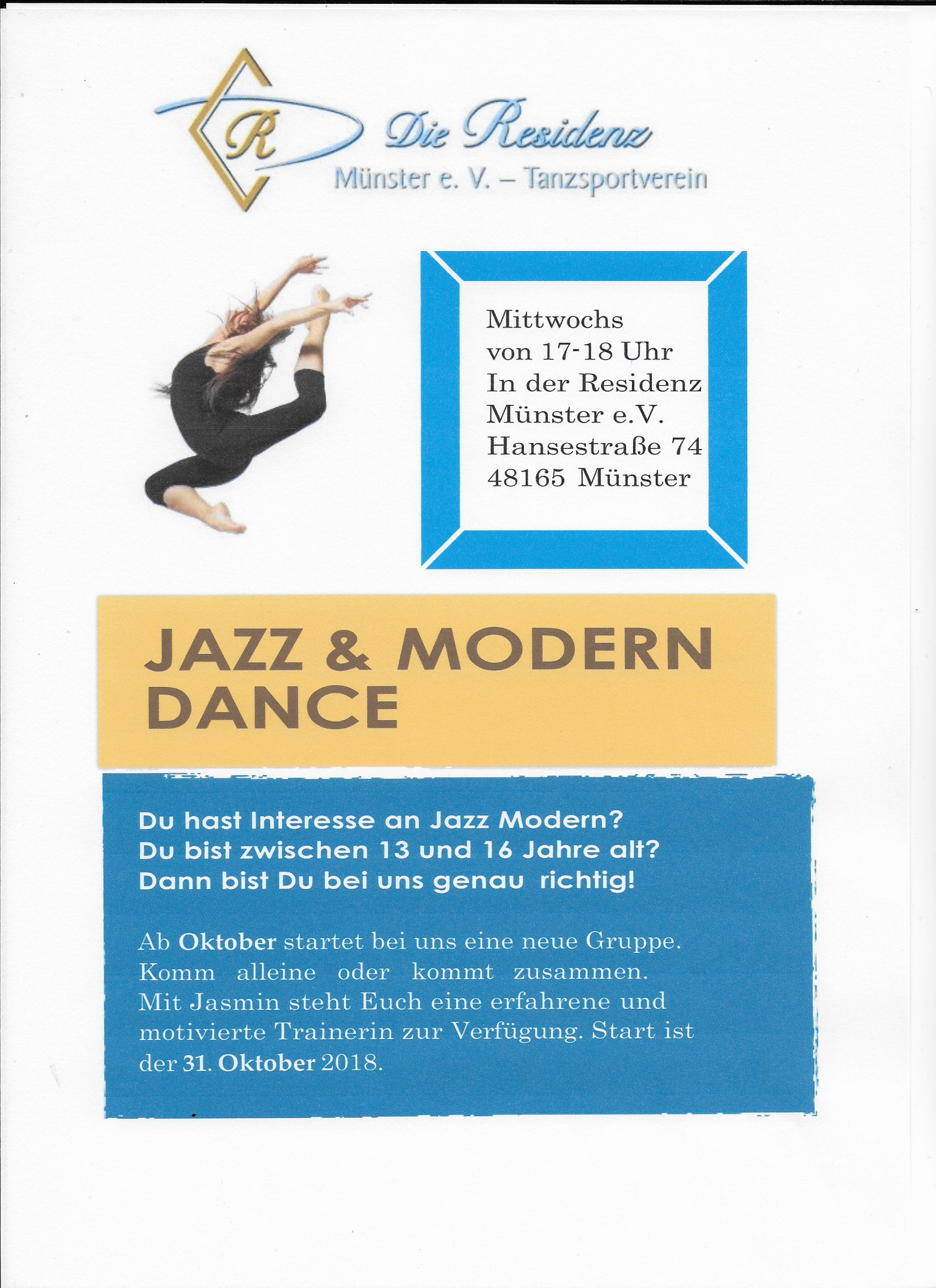 Neue Jazz- und Modern Dance Gruppe in der Residenz