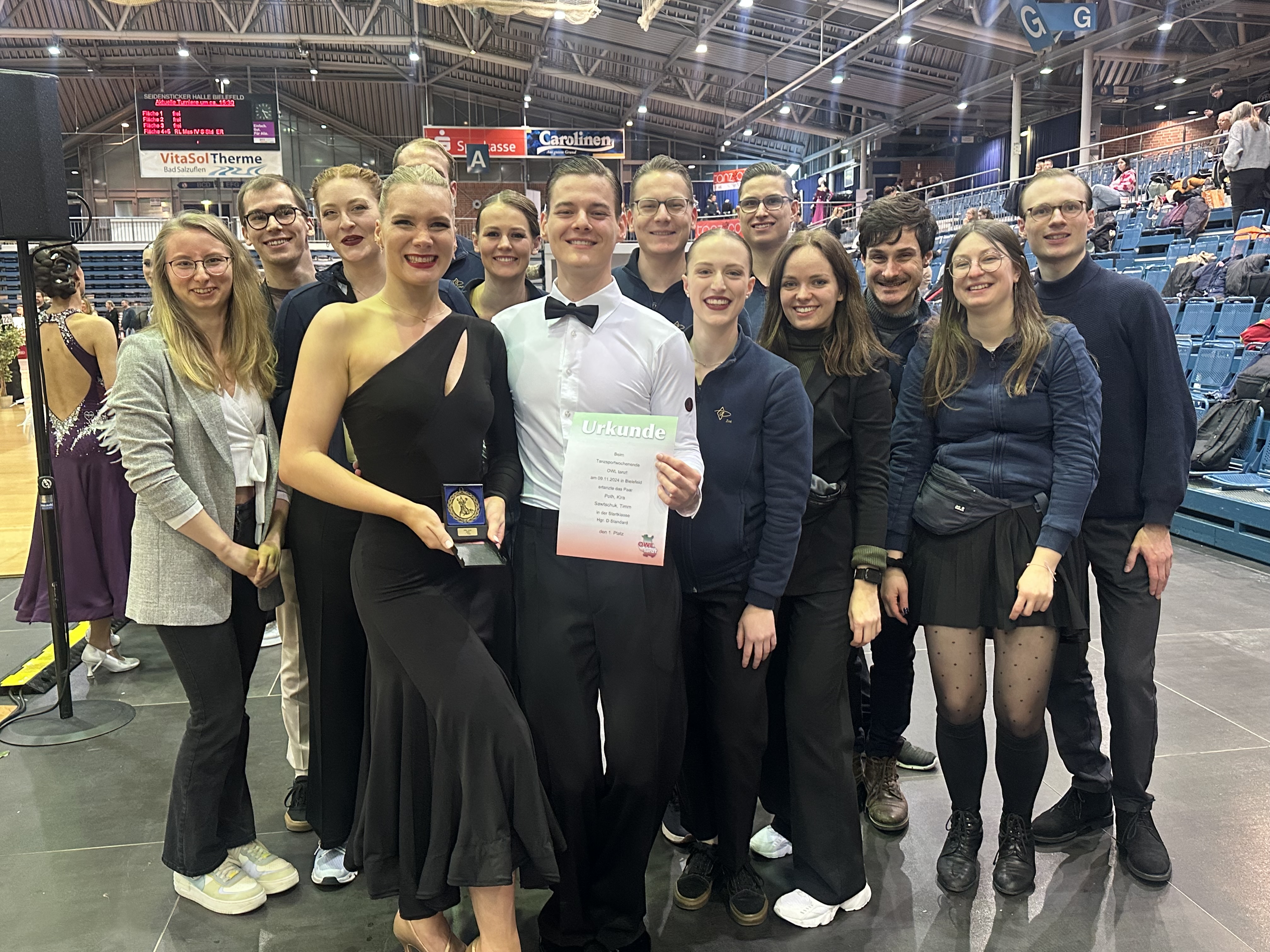 Am 02.11.2024 nahmen Lukas Klönne und Marie-Sophie Beaumont am Deutschland-Cup der Hauptgruppe A Standard in Unterschleißheim bei München teil. In einem starken Feld von 43 Paaren erreichten sie den 33. Platz. Zudem starteten Damian Peter und Jasha Rickhoff bei der Deutschen Meisterschaft der Hauptgruppe S Standard, ebenfalls in Unterschleißheim. Für die beiden war es ihre erste gemeinsame Deutsche Meisterschaft, bei der sie den 35. Platz von 42 Paaren erreichten. ...
