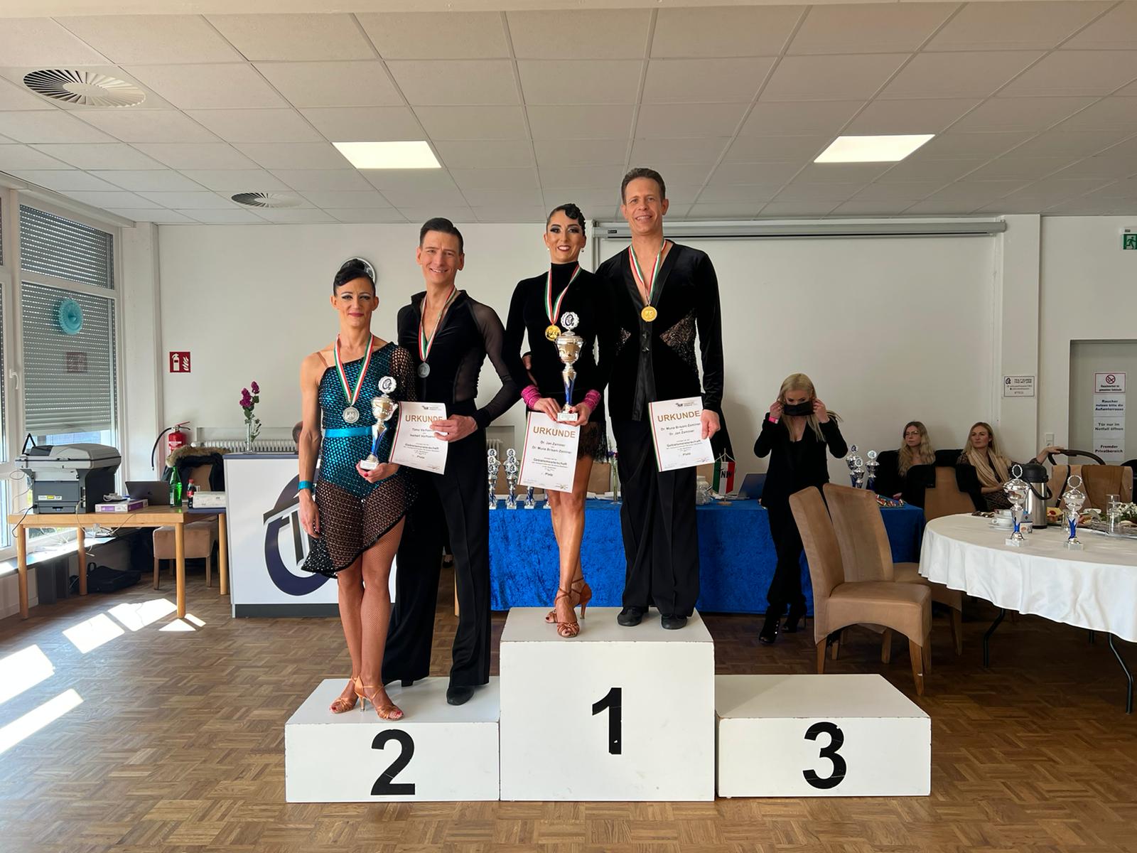Vergangenes Wochenende starteten insgesamt 3 Paare der Residenz Münster bei den Landes- und Gebietsmeisterschaften in Oberhausen. Dr. Muna Brisam-Zaminer und Dr. Jan Zaminer gingen nach einer zweijährigen Turnierpause das erste Mal wieder an den Start und gewannen direkt die Senioren I S Kombinationen. Elisabeth Tuigunov und David Jenner sind weiterhin auf Erfolgskurs und wurden mit allen gewonnenen Tänzen klare Sieger der Hauptgruppe S Kombination. Ebenfalls an den Start gingen Ulrike und Reinhold Konopatzky, die nur knapp das Halbfinale der Senioren IV S Standard verpassten.