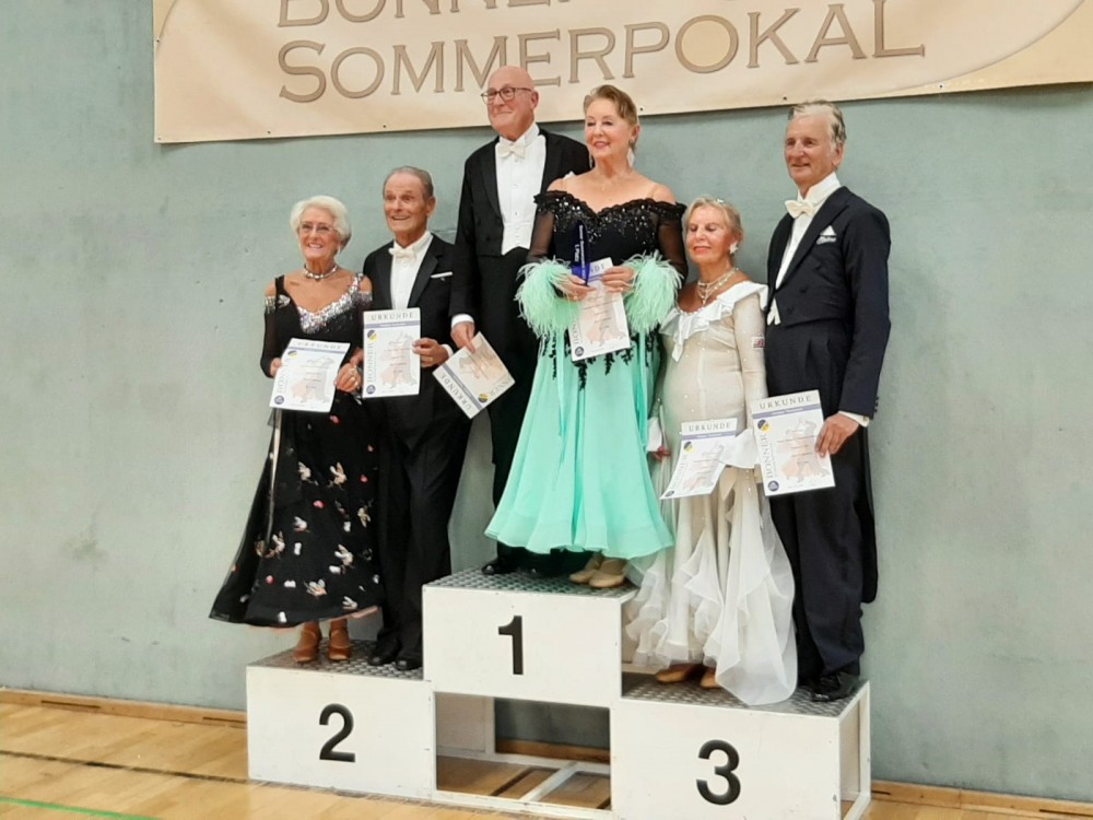 Drei Paare der Residenz waren erfolgreich beim Bonner Sommerpokal. Eva und Axel Tobüren tanzten das erste S V Standard Turnier in NRW mit und erreichten den 2. Platz von 3 Paaren. Die beiden waren damit sehr zufrieden, insbesondere da sie mit ihren zusammengerechnet 159 Jahre mit Abstand das älteste Turnierpaar der gesamten Veranstaltung waren.