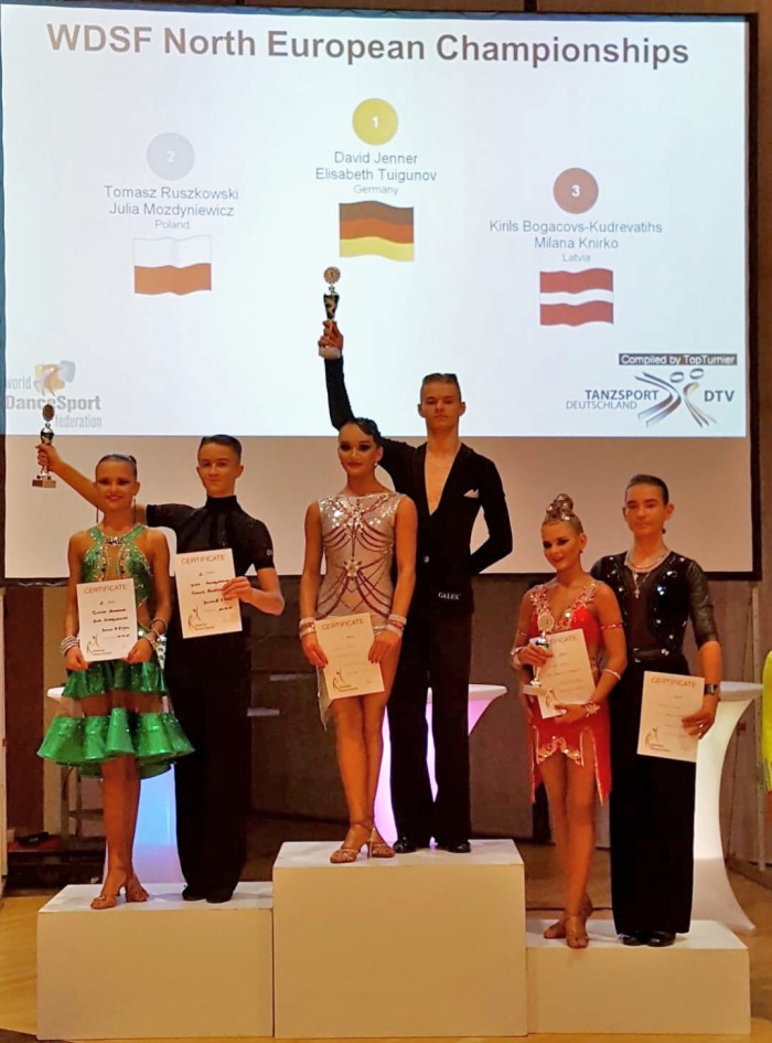 Im hiernach stattfindenden Standardwettbewerb hatten sie nur knapp das Nachsehen und wurden mit gewonnenem Slowfox und Quickstep Vizenordeuropameister in der Junioren II-B Standard-Klasse.