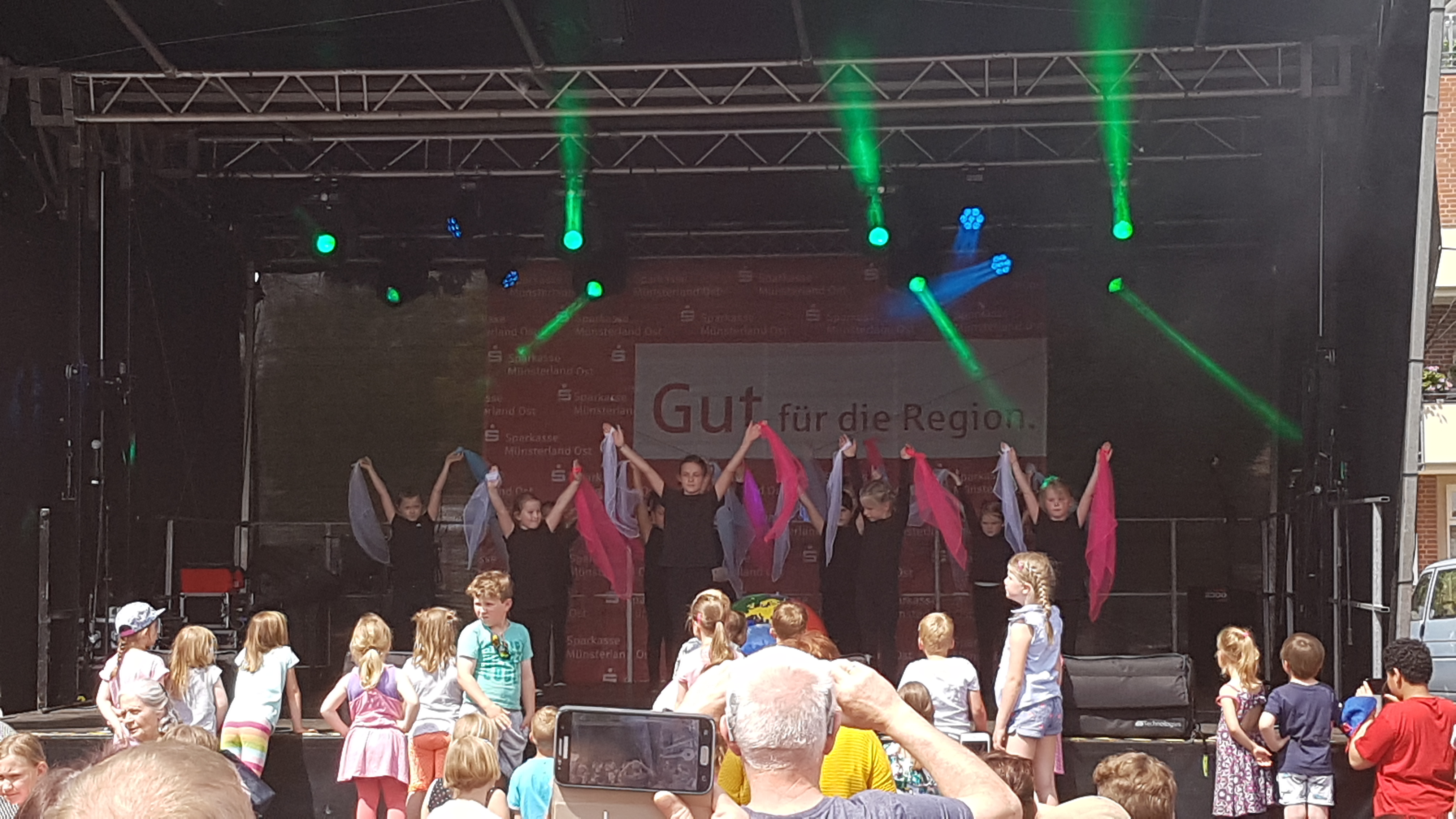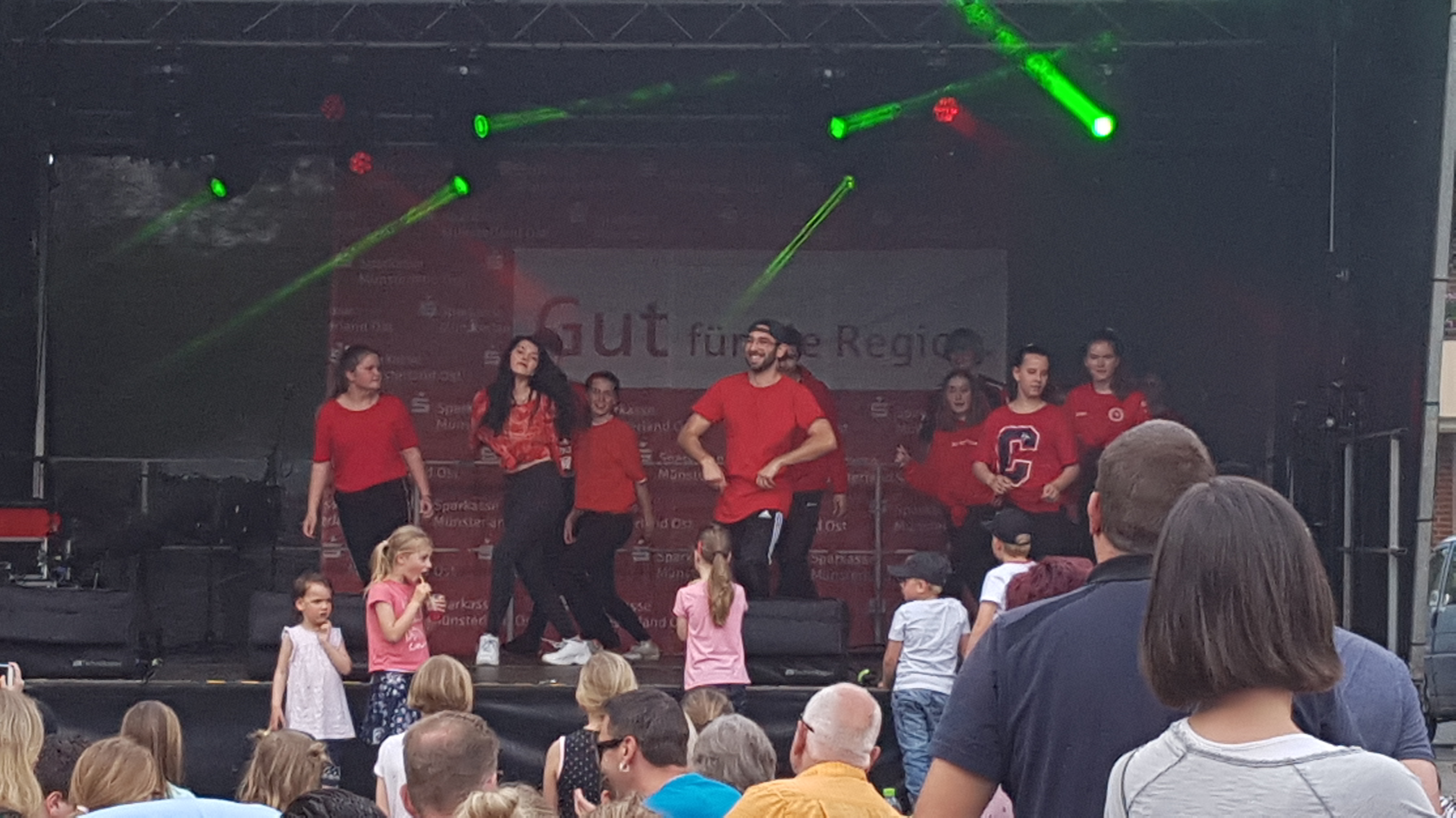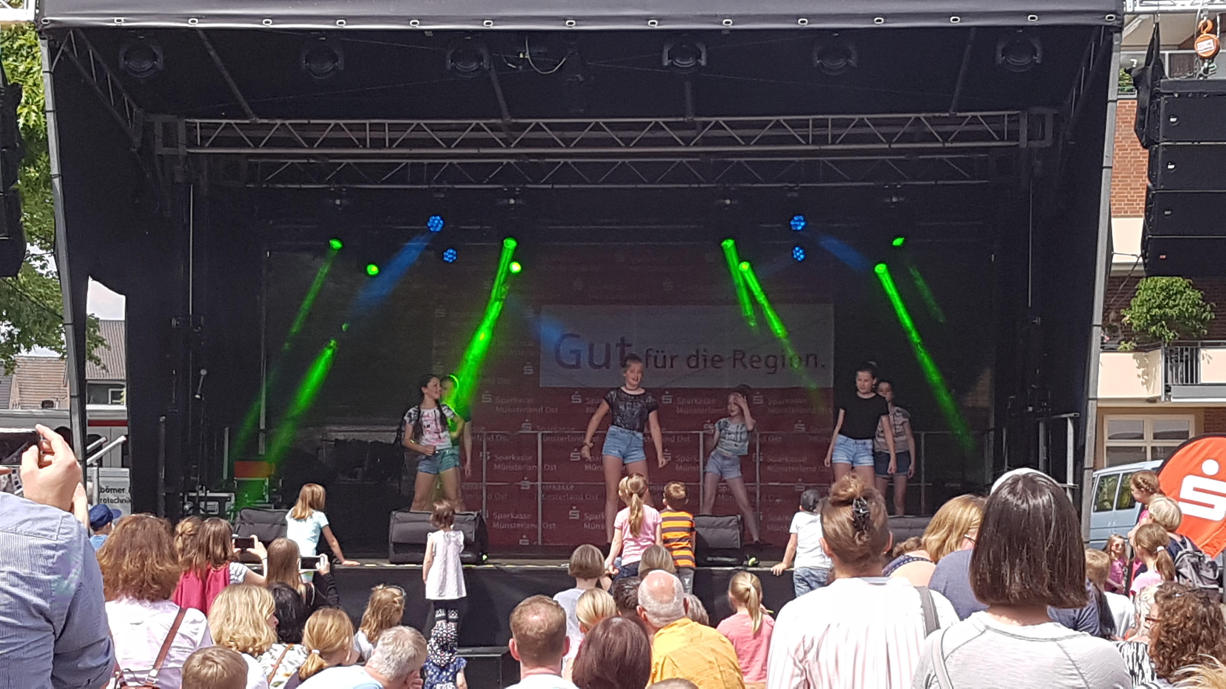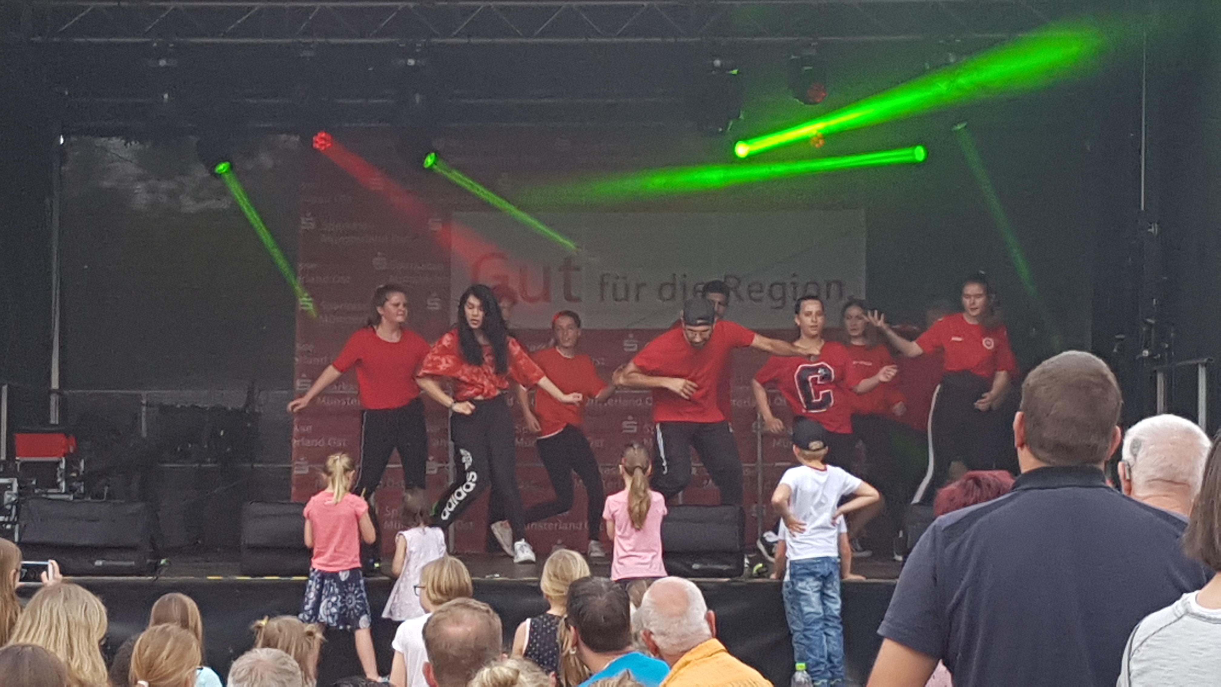 Es blieb aber nicht nur bei der theoretischen „Unterweisung“. Nein - am Sonntag ab 14.00 Uhr gehörte die Bühne uns, d. h. der Hip-Hop Gruppe unseres Trainers Tobias Wulf, den Jazz- und Modern-Gruppen von Jasmin Zoll und der Kindertanzgruppe „Tanzen wie am Broadway“ von Manuela Herberg.