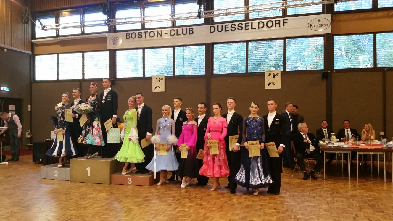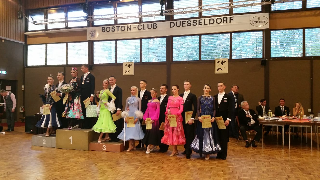 Am 21.09.2019 fanden in den Räumlichkeiten des Boston Club Düsseldorf die letzten TNW-Landesmeisterschaften des Jahres statt. Drei Paare der Residenz waren hierzu angereist. In der Senioren I Klasse Standard tanzten Christian Brinckmann und Alena Ostholt, sowie Jan Zaminer und Muna Brisam-Zaminer. Aufgrund zu geringer Startzahlen in der direkt vorgeschalteten Hauptgruppe-II-Klasse wurden beide Klassen als kombiniertes Turnier ausgetragen. Somit waren 8 Paare am Start. Beide Residenzpaare erreichten die Endrunde. Jan und Muna waren als diesjährige Aufsteiger erfreut, das Finale zu tanzen, am Ende wurde es ein 6. Platz. Getragen von den Erfolgen der letzten internationalen Turniere zeigten Christian und Alena tolles Tanzen und waren auch heiß auf den Meistertitel- denn das Paar Ciomber/von Brühl hatten sie international schon mal hinter sich gelassen. Am Ende wurde es dann doch der Vizemeistertitel für die Beiden. Somit zeigte sich die identische Reihenfolge aus der Hauptgruppe II des Vorjahres- Das Gesamtturnier gewann das Hauptgruppe-II Paar Voges/ Pohlmann, gefolgt von Ciomber/von Brühl und Brinckmann/ Ostholt.