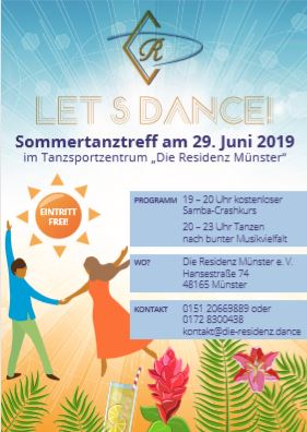 ... im Tanzsportzentrum „ Die Residenz Münster e.V.“ am 29. Juni 2019 Hierzu laden wir Mitglieder und Gäste, ob mit oder ohne Handicap, herzlich ein.