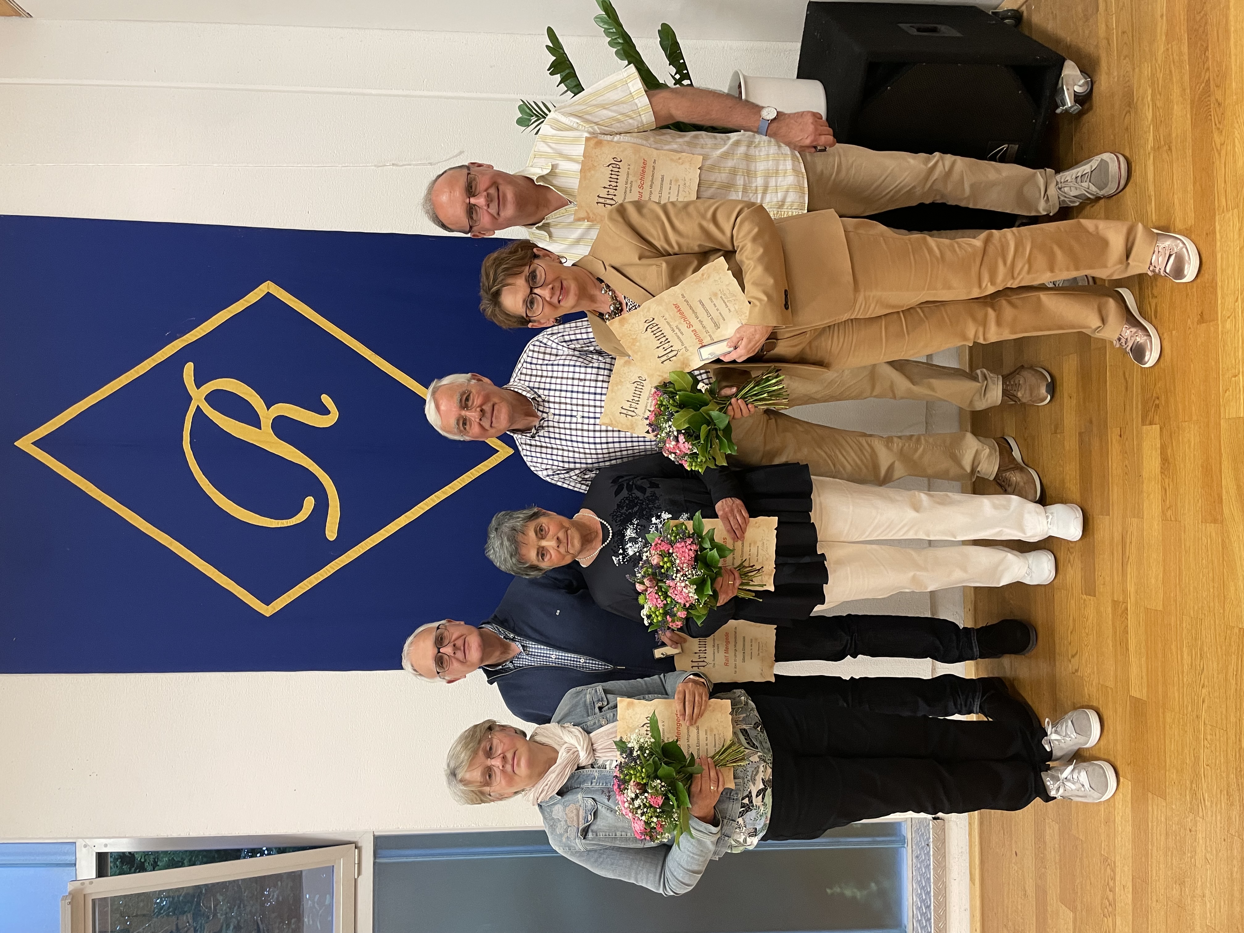 Besonderheit des Abends war die Vergabe der silbernen Ehrennadeln an sechs erschienene Mitglieder, die schon seit 20 Jahren dem Verein angehören. Wir danken (von links nach rechts) Hildegard und Ralf Mengede, Marlies und Ludger Klaas und Helma und Hartmut Schlieker für die lange Vereinszugehörigkeit.