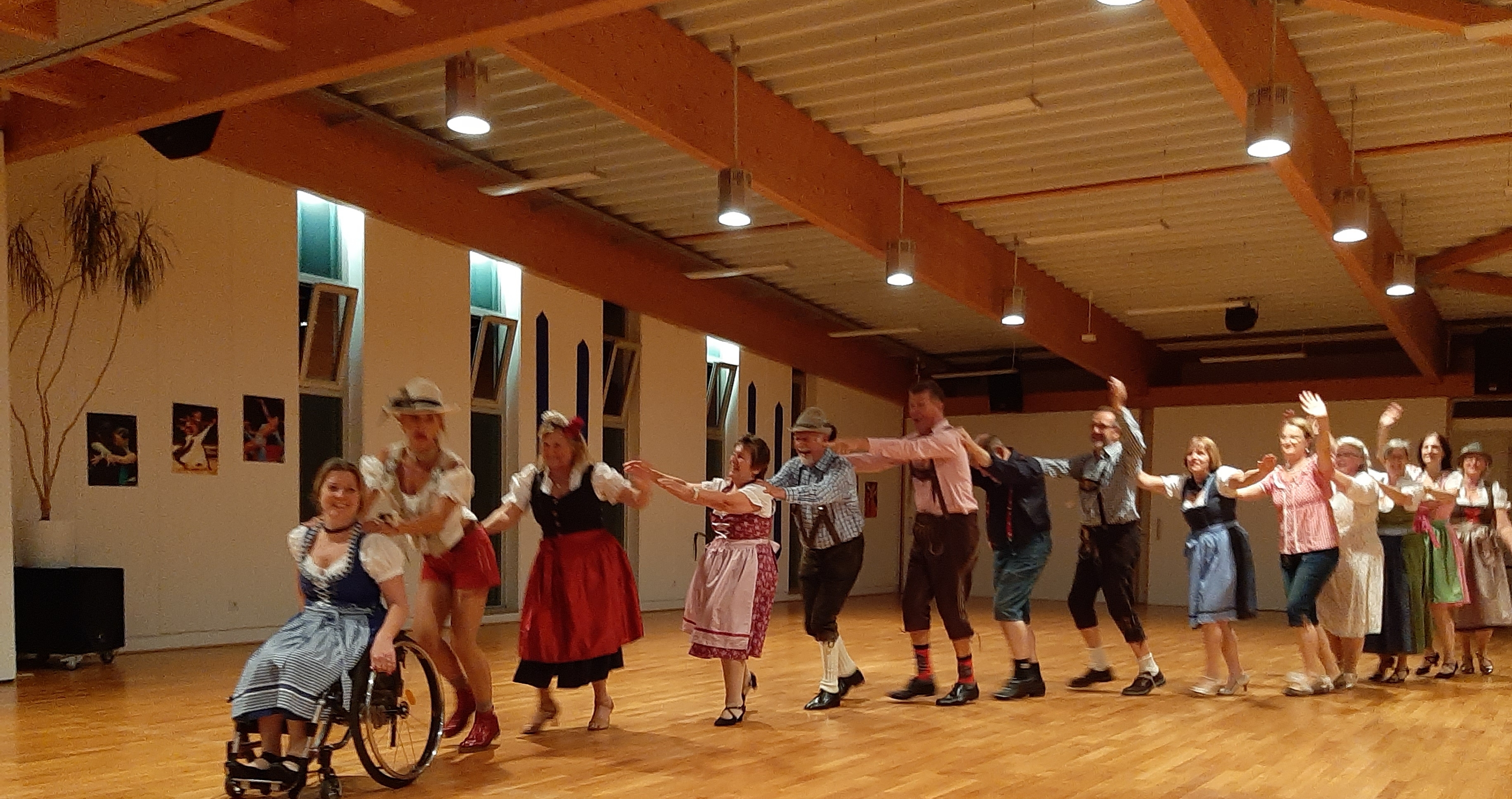 Die Rolli-Gruppe hatte sich zunächst in die Vorbereitung dieses Abends eingebracht und 3 Paare zeigten dann im weiteren Verlauf, wie man auch im Rollstuhl eine schwungvolle Formation tanzen kann. Ihre Tanzfreude und die gekonnte Vorstellung beeindruckten die Zuschauer…. Und dann kamen die HipHoper. Eigentlich kennt man sie in cooler Kleidung bei ihren Auftritten. Passend zum Motto „ Tanztreff beim Oktoberfest“ zeigten sie sich aber an diesem Abend in Dirndl und Lederhose und begeisterten die Zuschauer mit ihren Outfits und natürlich mit ihren coolen Moves.