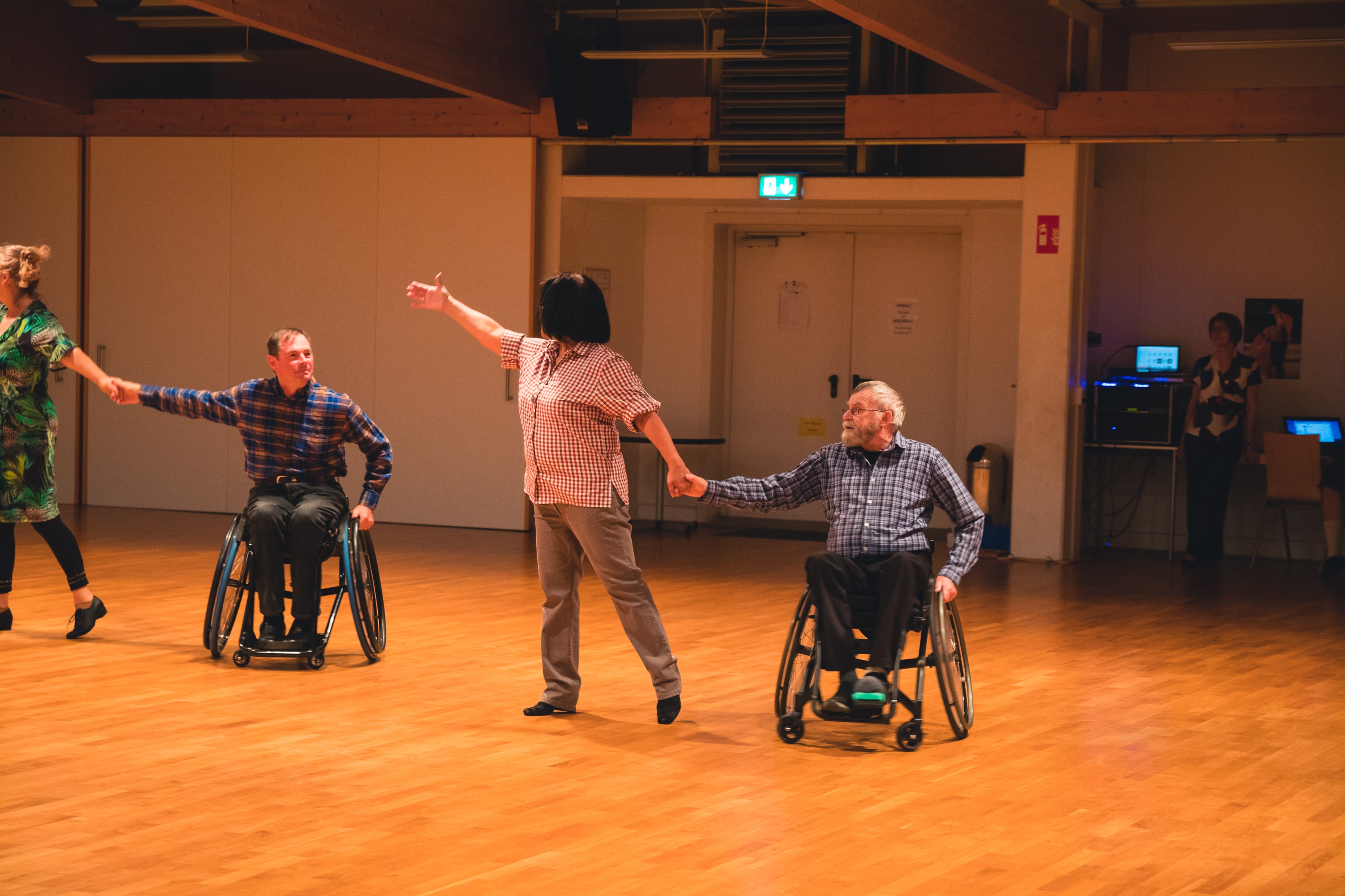 … einen Crash –Kurs mit dem neugierig machenden Motto“ Salsa trifft Polka“. Unsere Trainerin Juliane Pladek-Stille schaffte es mit einem klaren Aufbau, eine passende Salsa-Choreografie für TänzerInnen im Rollstuhl und zu Fuß einzuüben und – „erstaunlicherweise“ passte diese Schrittfolge dann auch auf ein Polka-Mix und wir lernten eine tschechischen Polka kennen. Eine schöne neue Erfahrung für alle!
