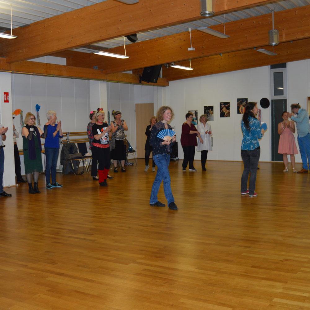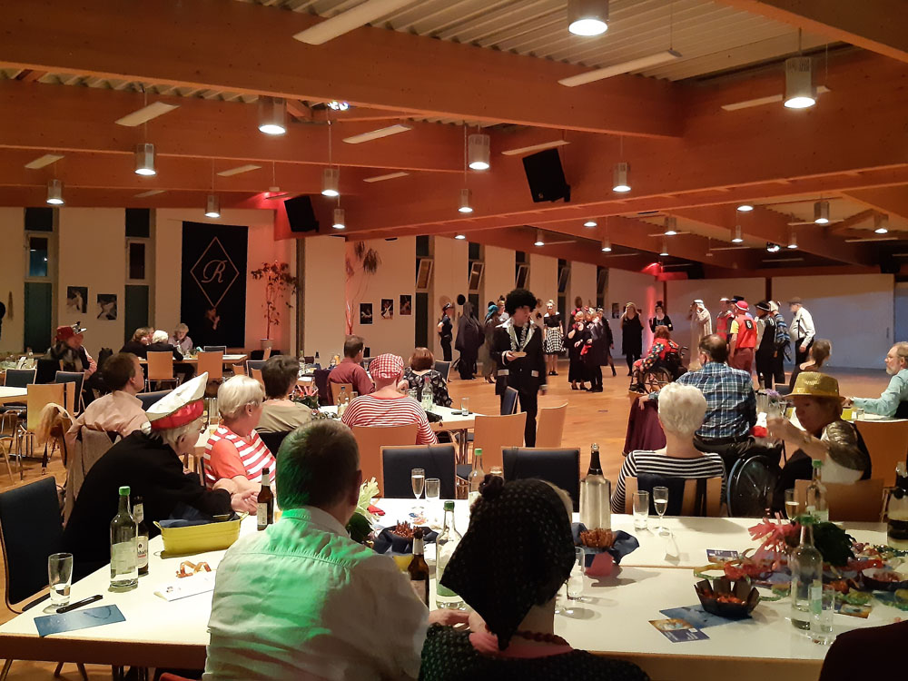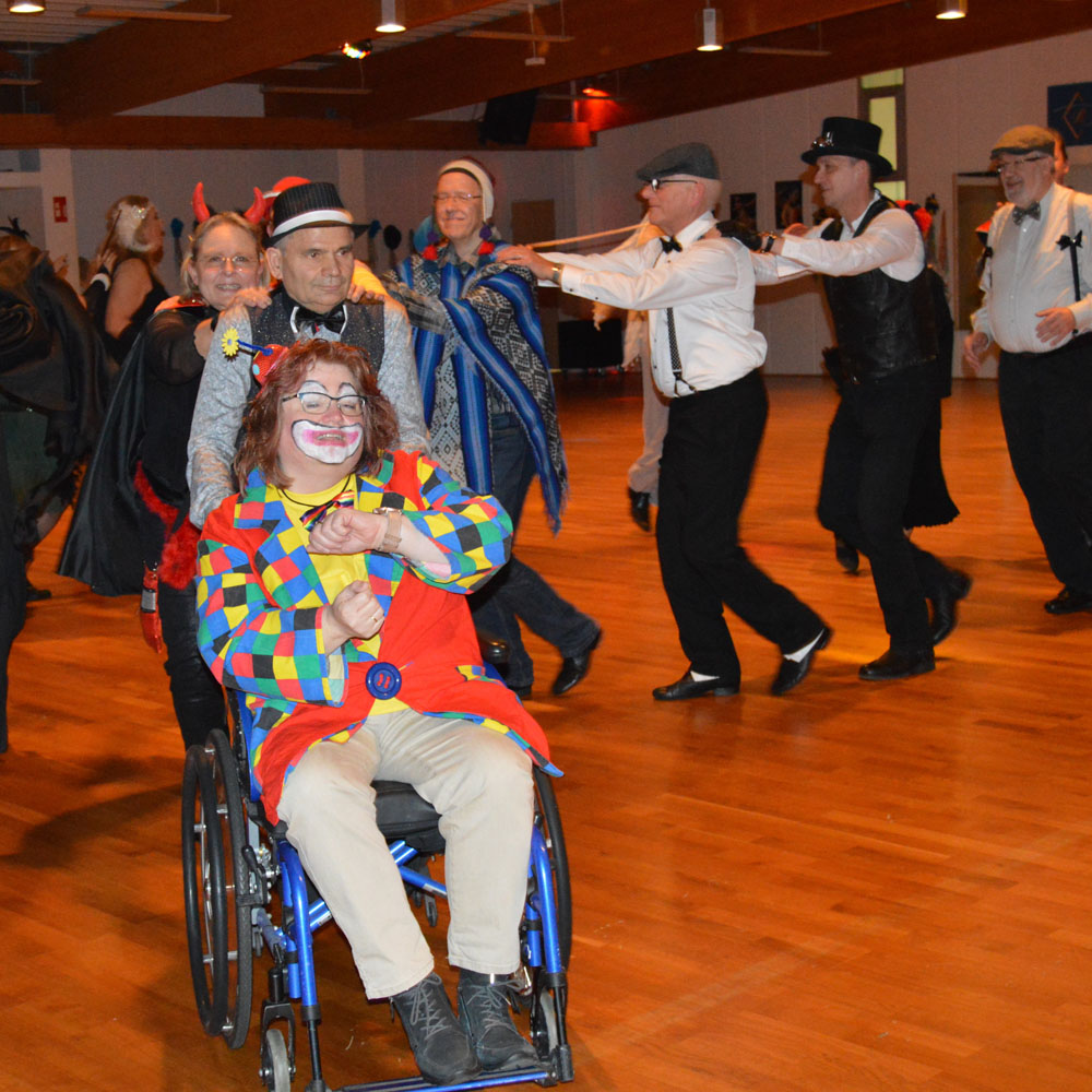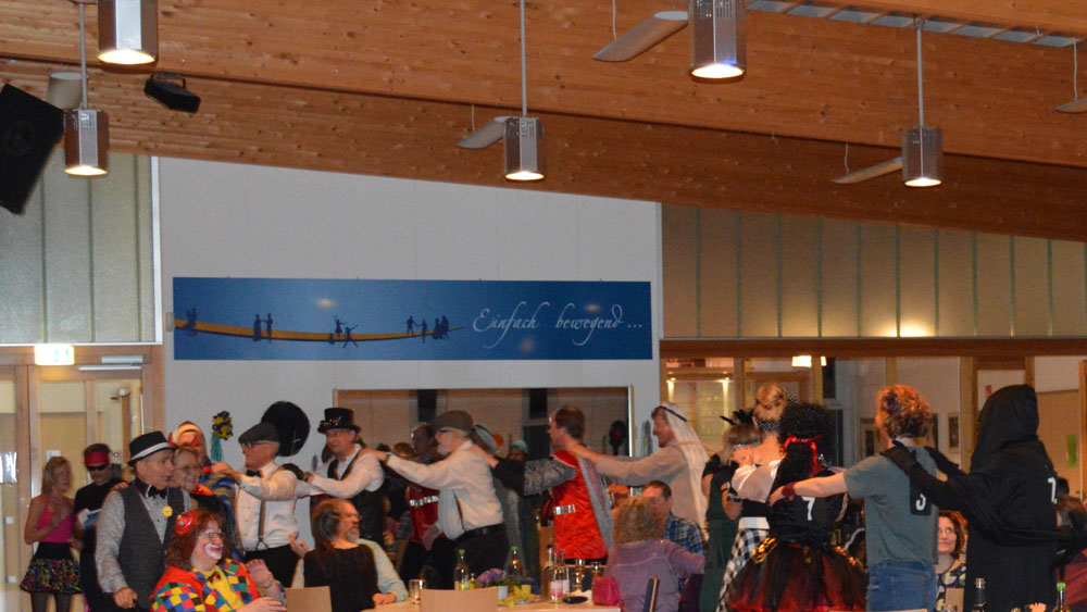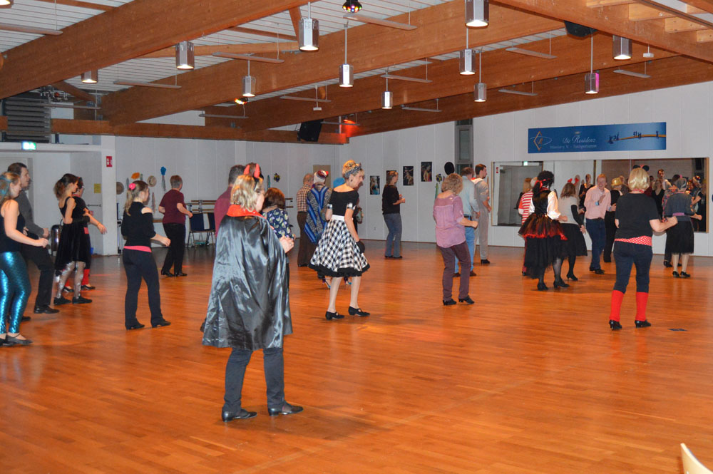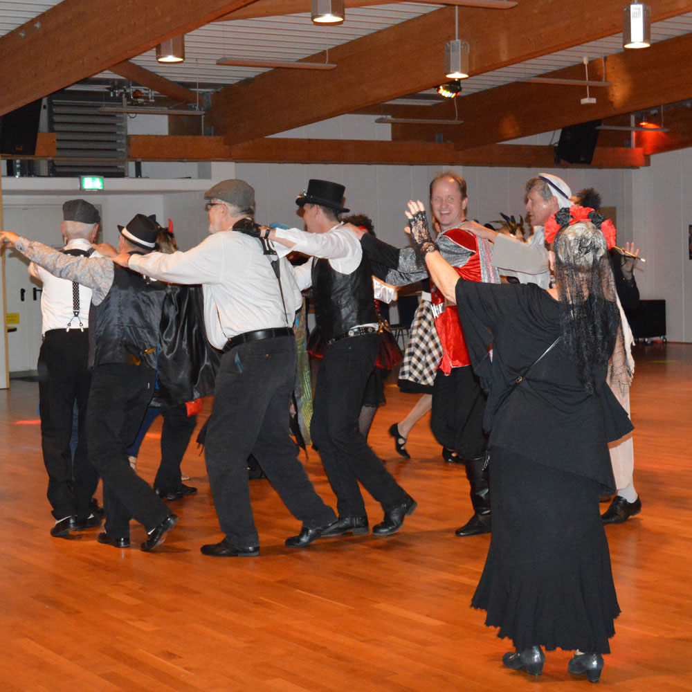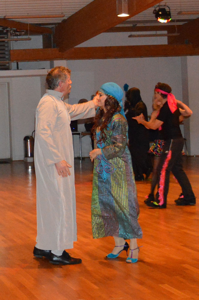 Nicht nur der bunt geschmückte Saal, die toll kostümierten Thekenhelfer, die vielen einfallsreichen Karnevalskostüme boten ein buntes Bild. Auch das Programm war eine bunte Mischung. Mit LindyHop - dem Tanz, der gute Laune bringt - beschäftigten sich viele Mitglieder und Gäste im Crash- Kurs. Für die meisten Tänzer*innen war diese lockere Tanzart eine neue Erfahrung, auf die sie sich gerne einließen. Als Follower oder Leader, mit Bounce und Drehungen, Partnerwechsel und "kreativem" Break hatten alle viel Spass! Auch die sich anschließende Musikvielfalt, ein Mix aus karnevals- Latein- und Standardmusik, sorgte für bewegte Stunden auf dem Parkett, auch beim Mitmachtanz, angeleitet von Moni Pietig. Bei der Kostümprämierung hatten die Juroren die " Qual der Wahl" , den Einfallsreichtum der Gäste zu bewerten. Als tänzerischer Höhepunkt des Abends zeigte das Residenz - S-Klassen Turnierpaar Monika und Markus Scheffler - als Eisprinzessin Elsa und " Frozen Olaf" - in entsprechend toller Kostümierung die 5 Standardtänze einmal anders. Ein Hochgenuss, für den mit lange anhaltendem Beifall gedankt wurde.