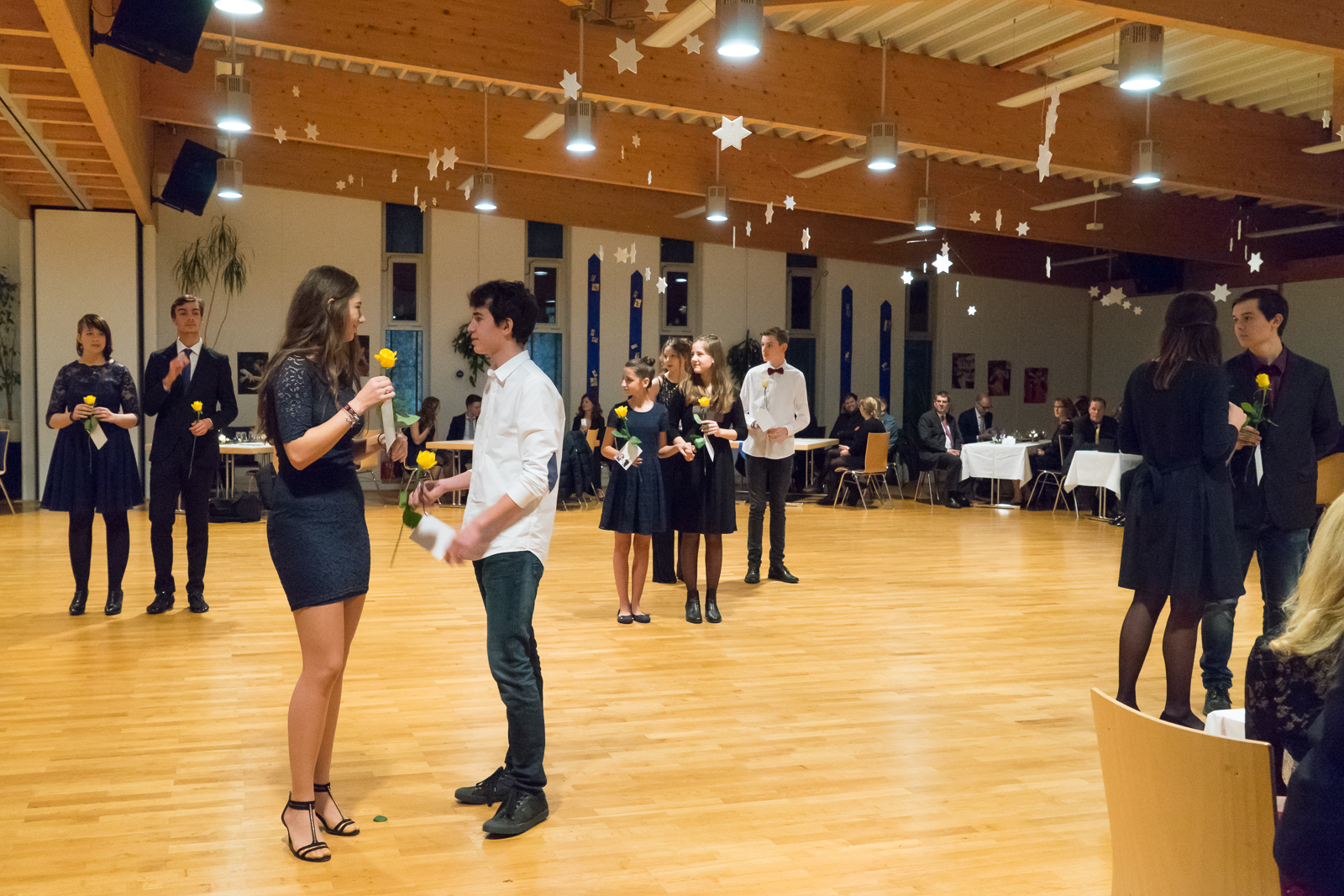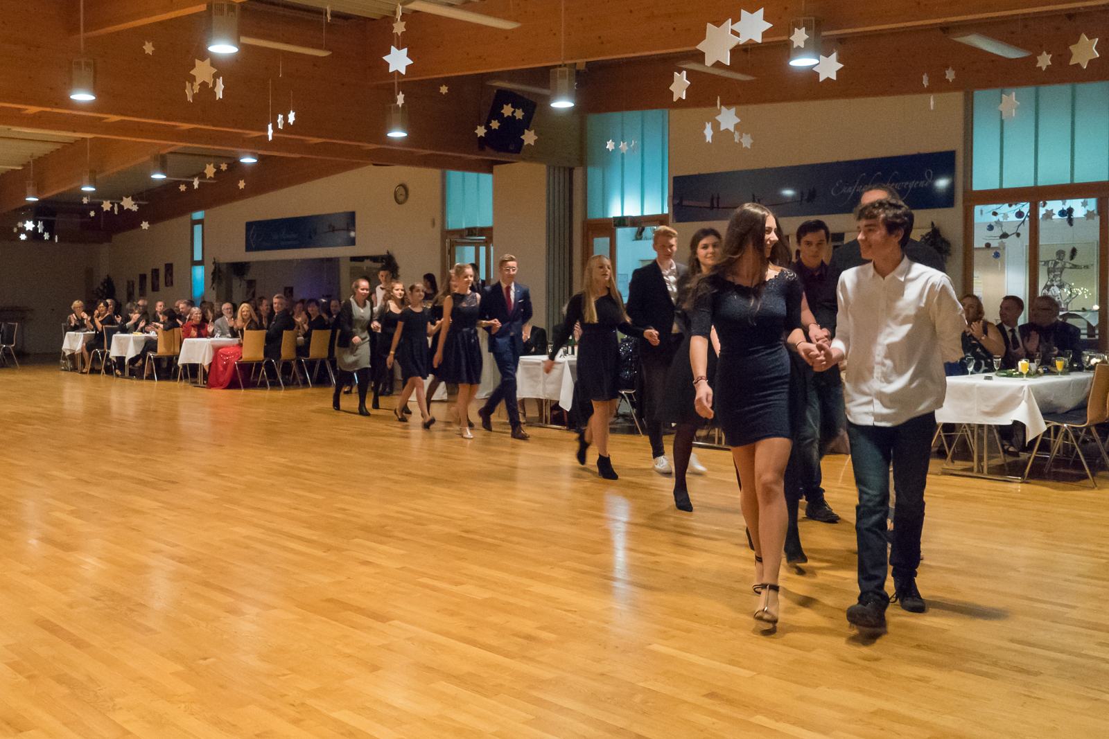 Eröffnet wurde der Ball offiziell mit einer Polonaise der Tanz-AG mit Schülern und Schülerinnen des Immanuel Kant-Gymnasiums und des Kardinal von Galen-Gymnasiums. Mit zwei Eröffnungstänzen zeigten sie, dass sie bei ihrem Trainer Ilja Kubrin in Ihren 10 AG-Stunden schon viel gelernt hatten. Hierfür wurden sie jeweils mit einer Rose und einem Gutschein für die Weiterführung der AG belohnt. Diese Weiterführung ist möglich durch die Fördergelder aus dem Bereich „ Schuko“ (Vereine und Schulen arbeiten zusammen). Mit diesem TNW-Förderpreis wurde die Residenz erneut ausgezeichnet.