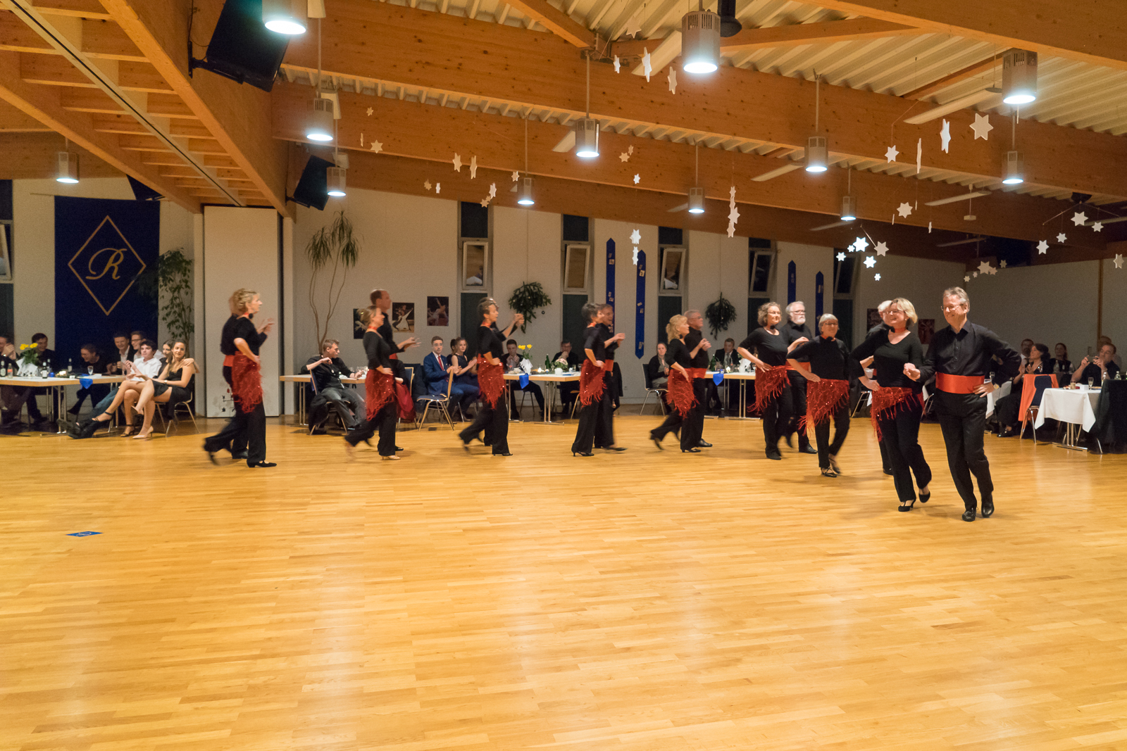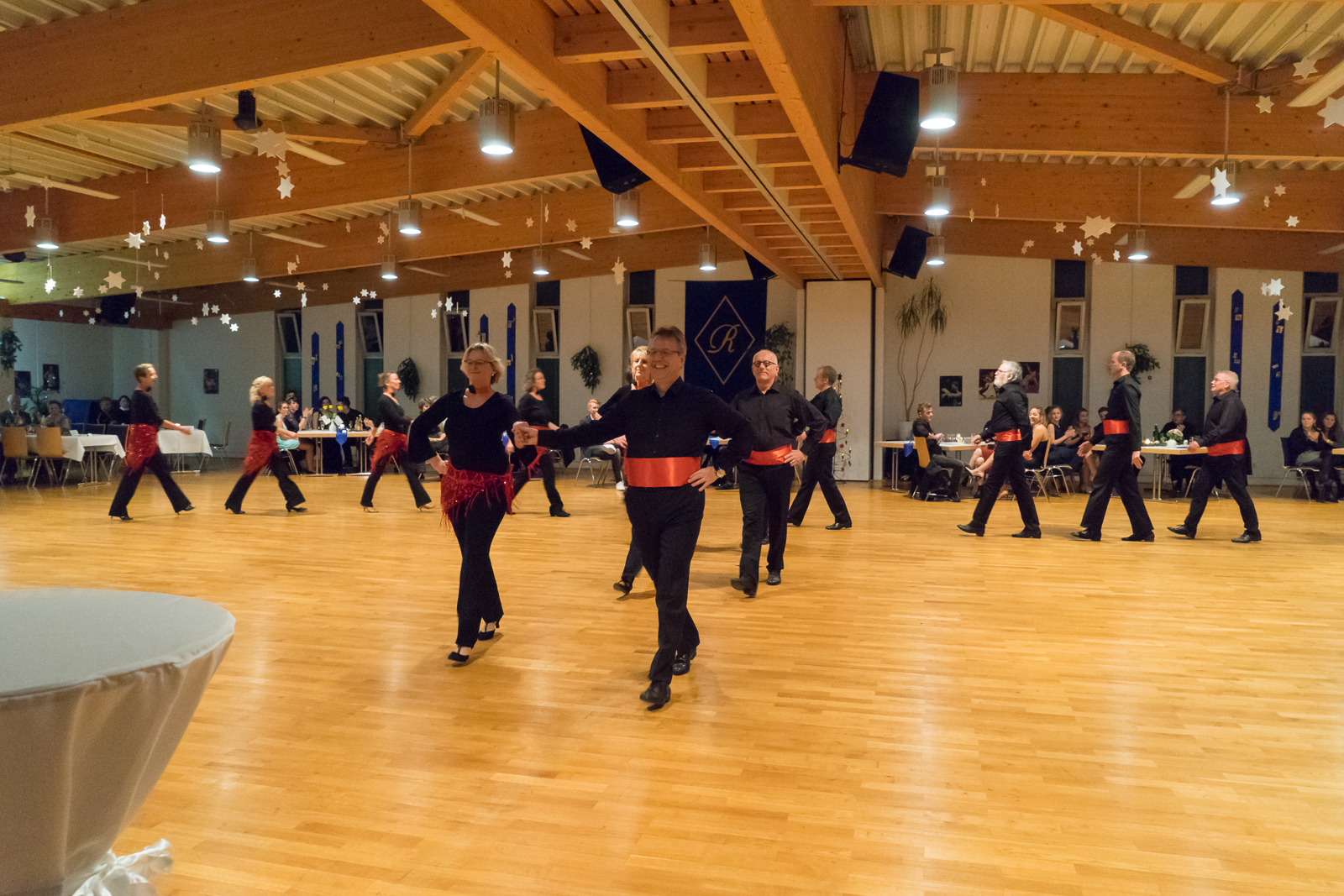 Als erstes zeigte die 8-paarige Paso Doble Formation von Monika Pietig eine anspruchsvolle sowie mitreißende Darbietung. Nur nach einer Zugabe konnten die Tänzer und Tänzerinnen vom Parkett entlassen werden.