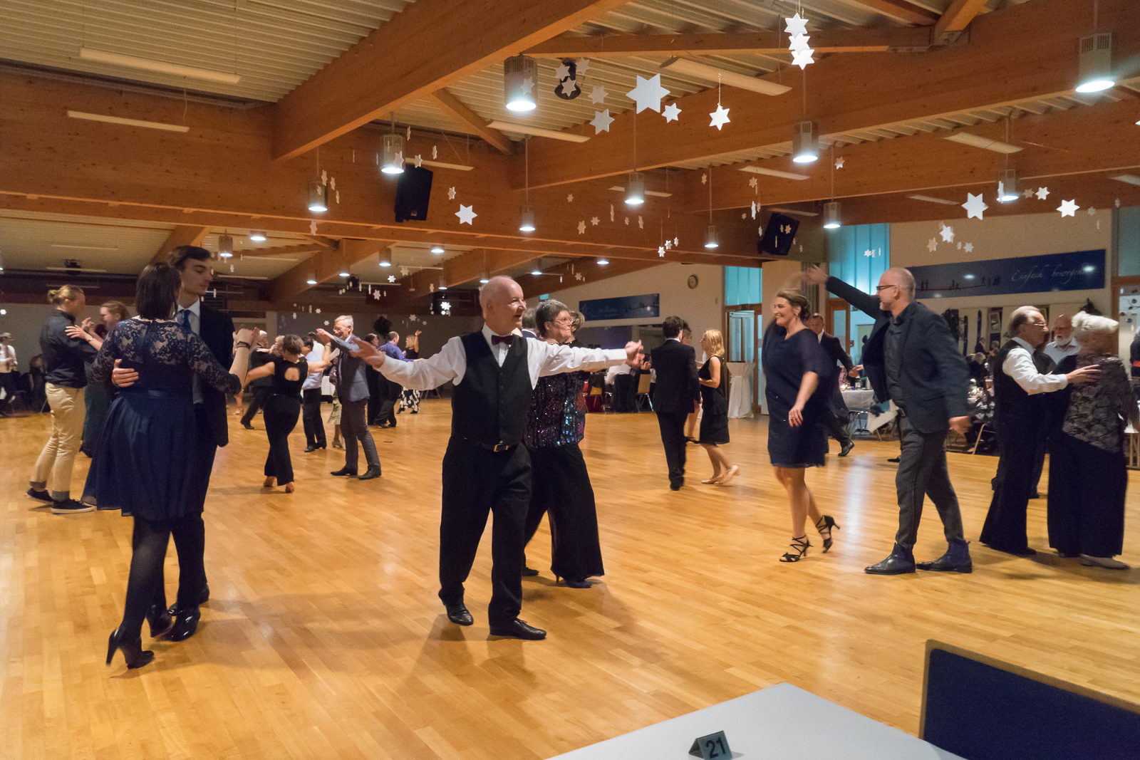 Den Abschluss des Programms bildete eine Standard-Show vom amtierenden Landesmeisterpaar in der Hgr-II-A-Klasse Sebastian Wagner und Kristina Möller sowie von Markus und Monika Scheffler, einem erfolgreichen Tanzpaar der Senioren-S-Klasse. Beide Paare waren eine Augenweide auf dem Parkett und zeigten besonders bei den Zugaben, wie beeindruckend Standardtanz auf höchstem Niveau sein kann.