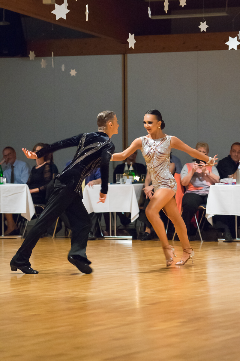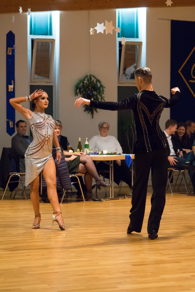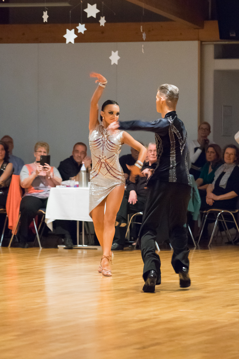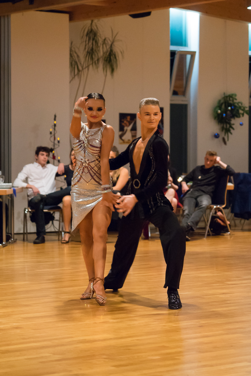 Das derzeitige „Vorzeigepaar“ der Residenz David Jenner/Elisabeth Tuigunov zeigte eine Latein-Show: Außergewöhliche Paarharmonie, spritziger Tanzstil und neue Schritt- und Figurenkombinationen in außergewöhlicher Geschwindigkeit brachten die Zuschauer zum Staunen. Wegen ihrer außergewöhnlich erfolgreichen Turnierergebnisse in diesem Jahr (mehrere Deutsche Meistertitel, 4. Platz WM 10 Tänze und Semifinalisten bei der WM Standard und Latein, Nordeuropa-Meister und Vizemeister) wurde dieses junge Paar mit der silbernen Ehrennadel des Vereins ausgezeichnet.