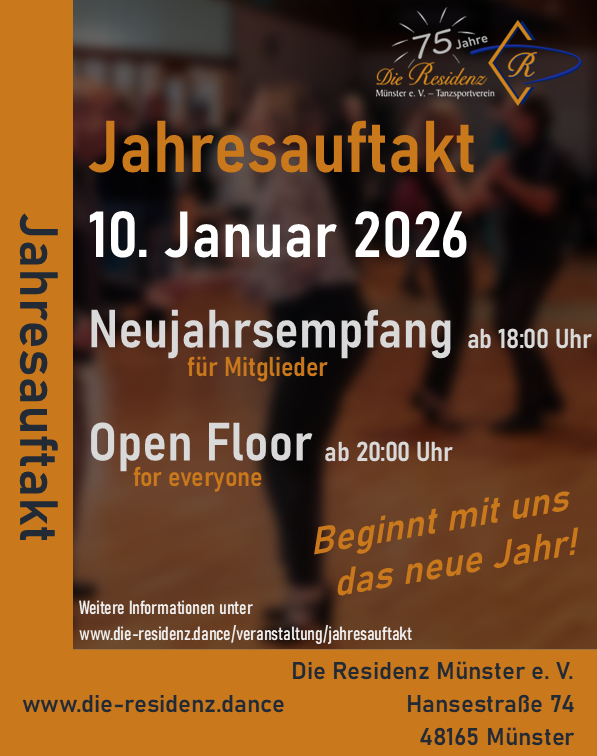 2026 darf die Residenz Münster bereits ihren 75. Geburtstag feiern. 1951 wurde der Blau-Gold-Club Münster als einer der beiden Vereine gegründet, aus der die Residenz hervorging - mehr zu unserer Geschichte gibt es hier zu lesen. Wir möchten das Jahr nutzen, um immer wieder auf unsere traditionsreiche Historie zurückzublicken. Den Auftakt dazu bilden gleich zwei Veranstaltungen zum Jahresbeginn: